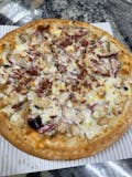 Chicken, mushrooms, bacon, red onions & ranch (no tomato sauce).